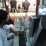 Amma again blessed the residents of Amritapuri with another web-cast – this time from the San Ramon Ashram where the third evening of programmes were beginning. After satsang, bhajans, and arati, Amma began giving darshan. The computer with the web-cast was brought near Amma who occasionally glanced over at us to everyone’s delight. After sometime Amma was asking to see Ram and Lakshmy – the Ashram elephants!