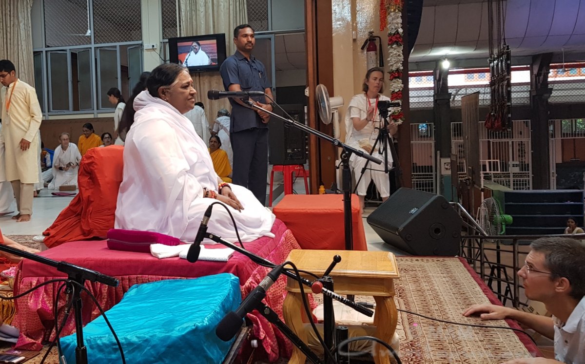 Amma arrived on the stage, giving her #Onam message, celebrating with her children @Amritapuri pic.twitter.com/v1RtG0KiiH