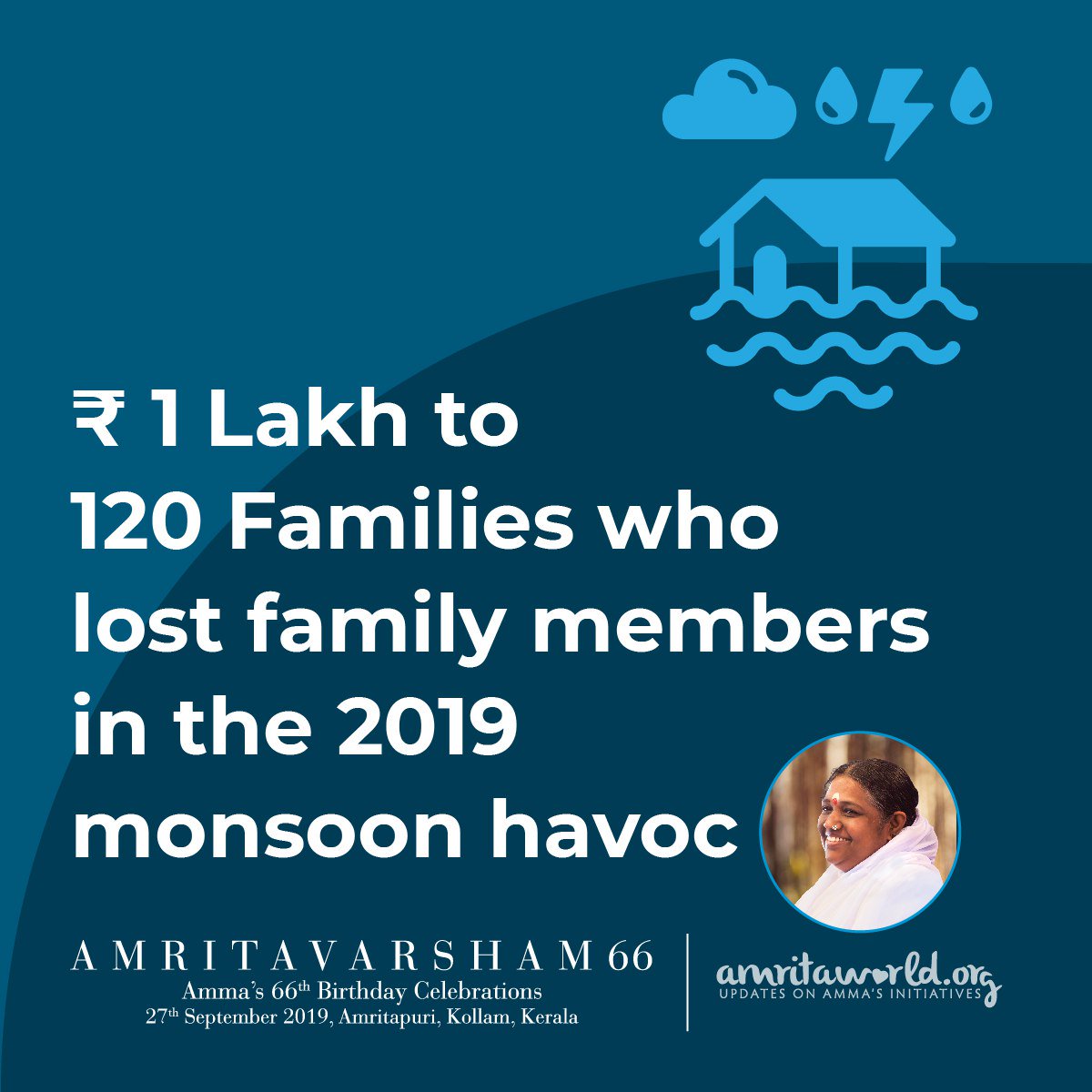 ₹1 lakh to 120 families who lost family members in the 2019 monsoon havoc at #AmritaVarsham 66
