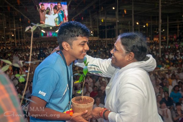 A project to help restore humankind’s lost harmony with Nature, #AmritaVanam was launched by Amma. Through Amritavanam, AYUDH members will create many small dense forests across the nation.