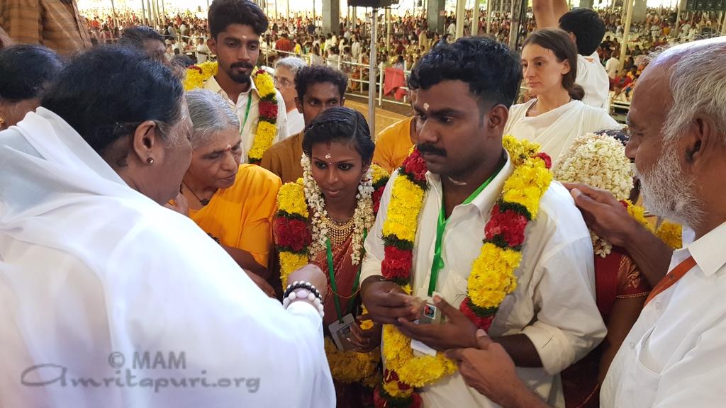 In Amma’s presence free marriage of 10 impoverished couples were conducted at #AmritaVarsham66pic.twitter.com/XhL27xOssZ