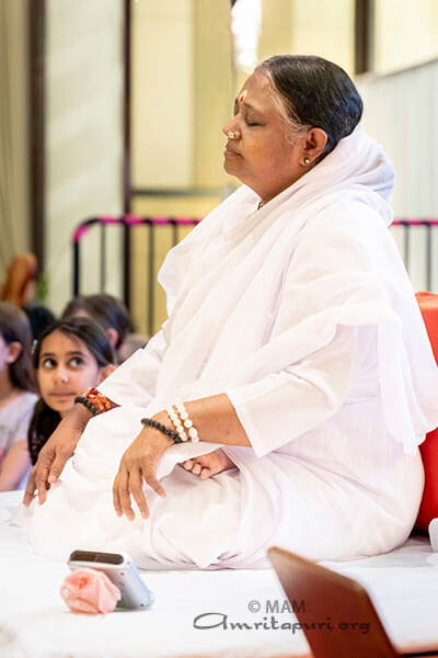 When we chant hymns, we can surely chant them aloud there is no harm in it. But when we are chanting mantras that have bijaksharas (seed sound syllables), then it is advised not to chant such mantras aloud. It is better to chant such mantras by merely moving the lips. – #Amma pic.twitter.com/bHylBNyT8x