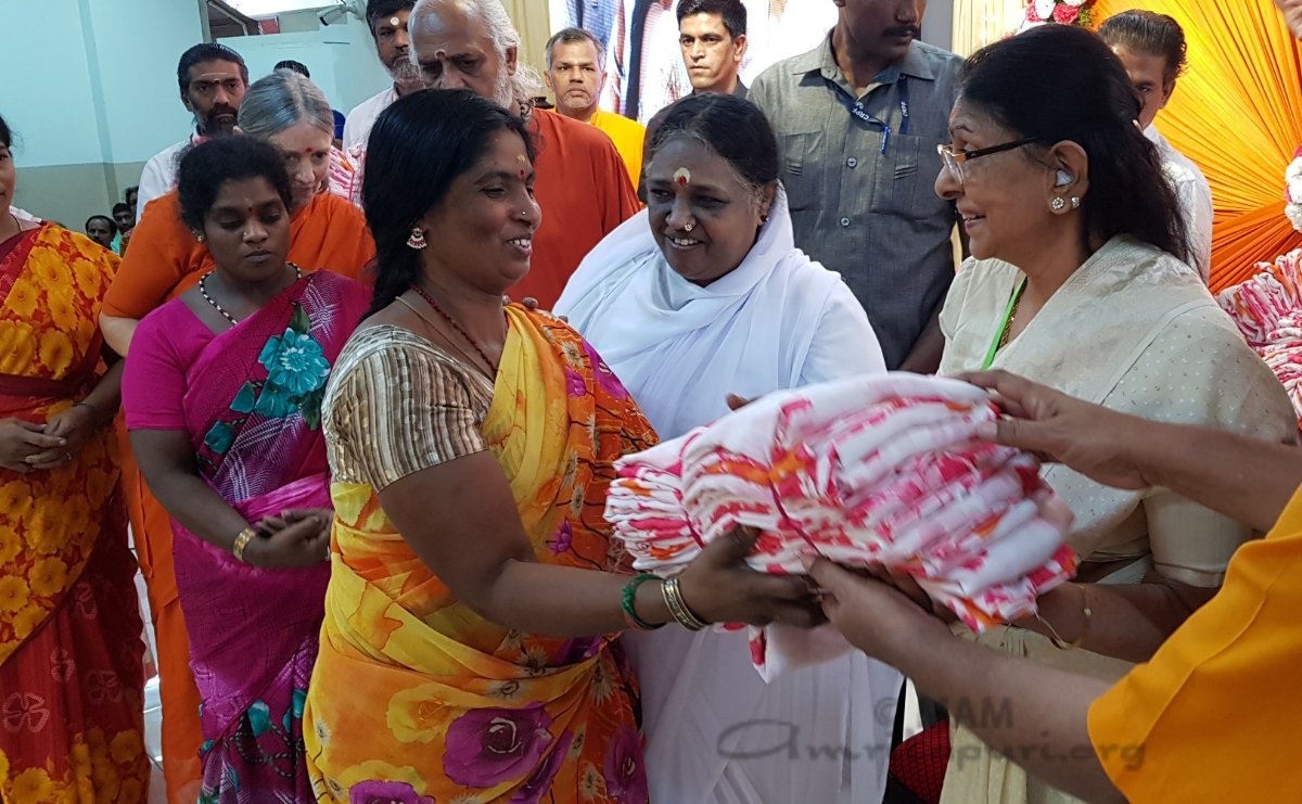 Saris for the self help group members is being distributed, helped by Sarada, Malayalam movie actress.