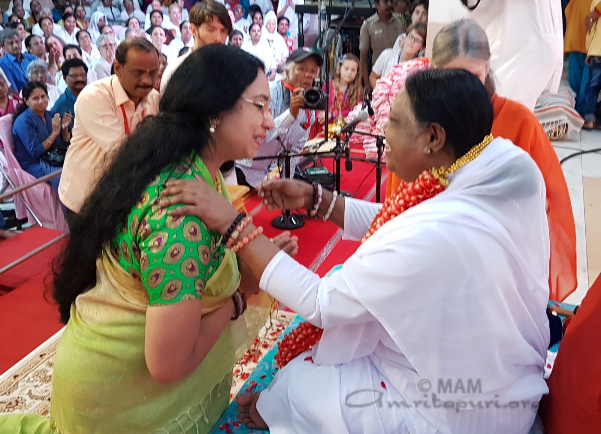 Dignitaries garlanding Amma at Chennai Brahmasthanam Festival – #BharataYatra 2020
