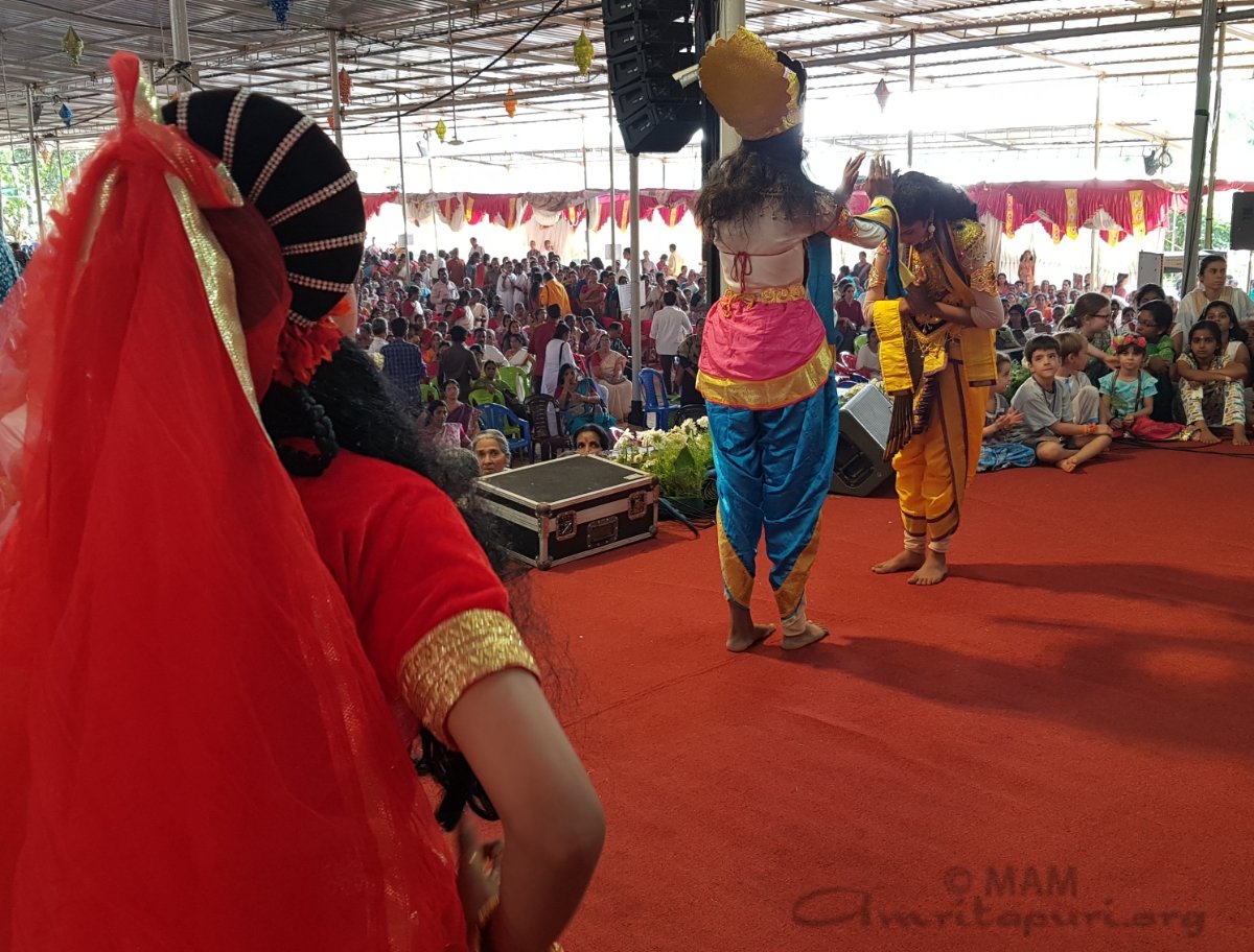 AmritaVidyalayam children are presenting different cultural programs, Amma continues Darshan at Kozhikode Brahmasthanam Festival – #BharataYatra 2020 pic.twitter.com/iZuF1ZhFlc