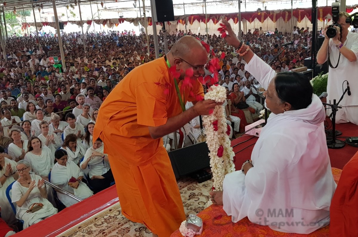 Amma arrived in the stage, Dignitaries garlanding Amma and welcoming her to Kozhikode Brahmasthanam Festival – #BharataYatra 2020 pic.twitter.com/KJCxkzbXkz