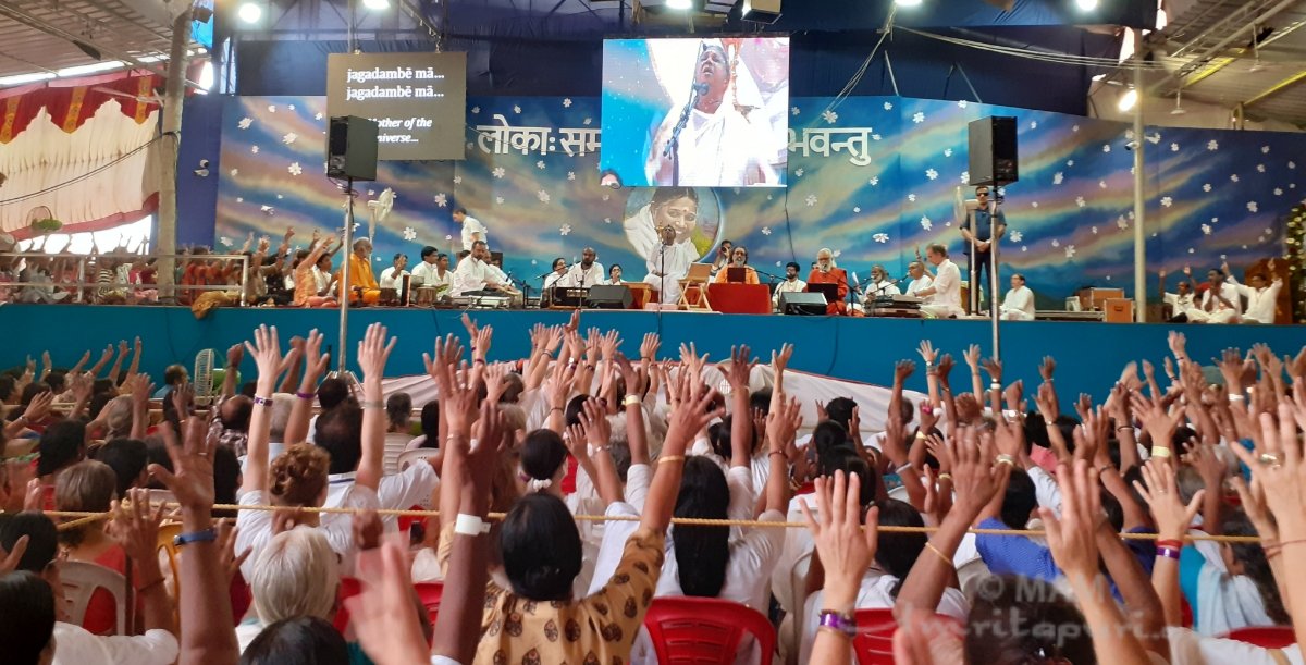 The last Bhajan Amma sang was “Shakti tu sab …” Now Amma is leading all in ManasaPuja & Meditation – 2nd day Thiruvananthapuram Brahmasthanam Festival – #BharataYatra 2020 pic.twitter.com/z5SCAgaEct