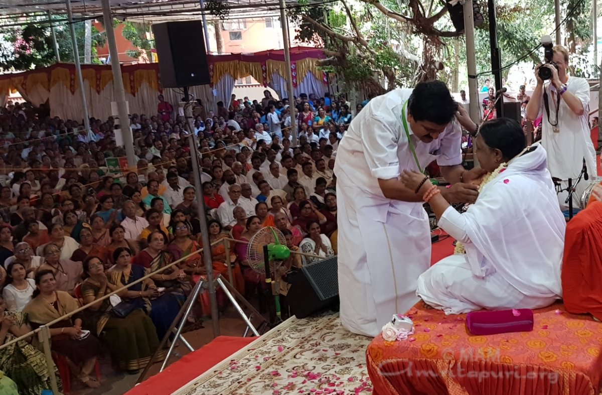 Dignitaries garlanding Amma at Thiruvananthapuram Brahmasthanam Festival – #BharataYatra 2020pic.twitter.com/eA8PPHh4yr