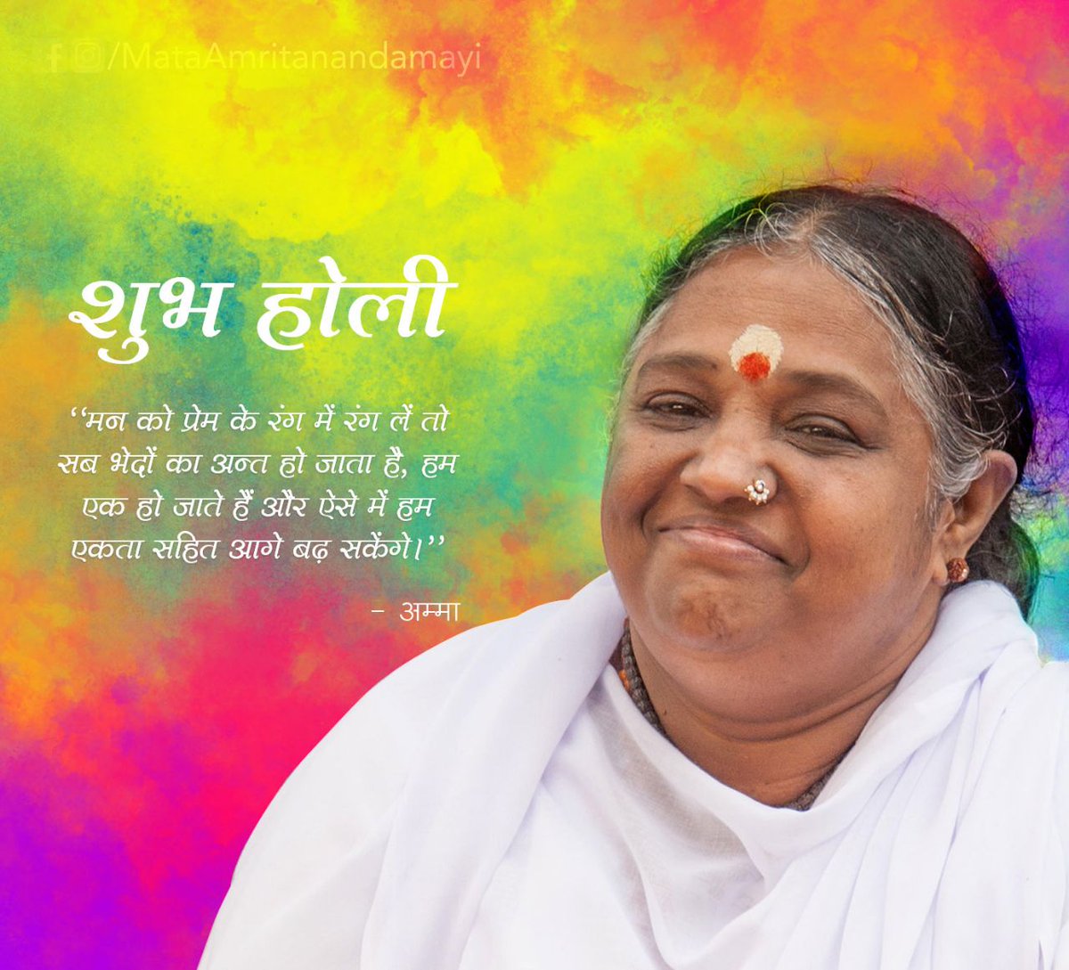 शुभ होली “मन को प्रेम के रंग में रंग लें तो सब भेदों का अन्त हो जाता है, हम एक हो जाते हैं और ऐसे में हम एकता सहित आगे बढ़ सकेंगे।” – अम्मा #होलीpic.twitter.com/Gr3Ajx1rGj