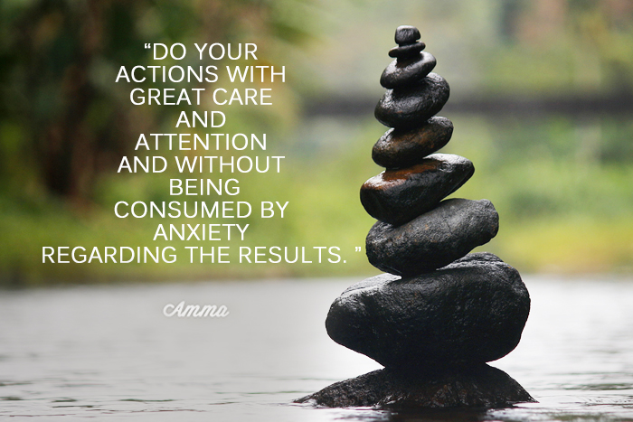 Do your actions with great care and attention and without being consumed by anxiety regarding the results. – #Amma pic.twitter.com/ciFj6jU718